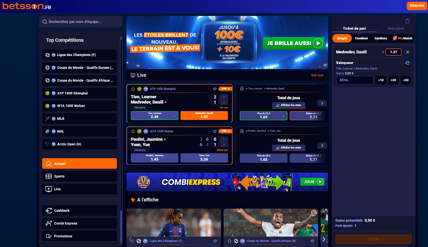 Betsson met aussi en avant des boosts temporaires et des promotions sur certains matchs, permettant d’obtenir des cotes avantageuses sur les événements phares.