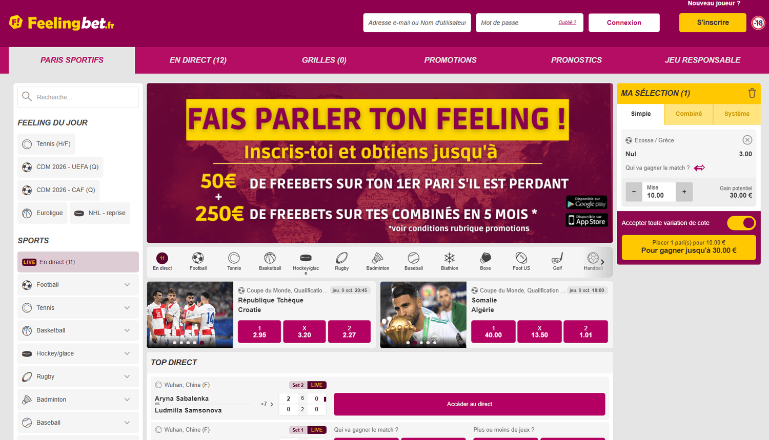 FeelingBet propose des cotes solides, souvent dans la bonne moyenne du marché français.