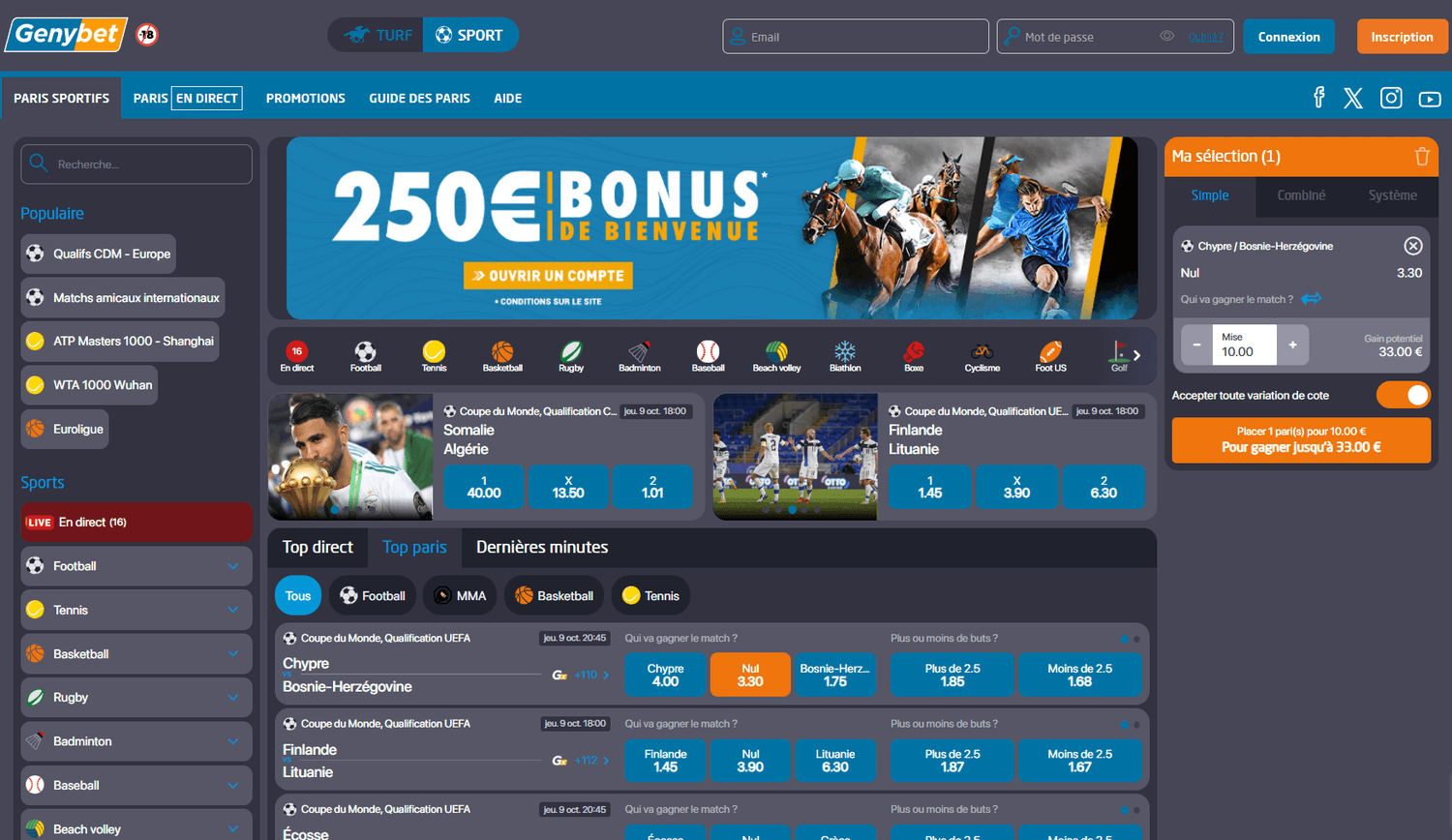 Pour un bookmaker qui n’a pas la taille d’un mastodonte international, Genybet offre une expérience solide et fiable sur les paris sportifs.