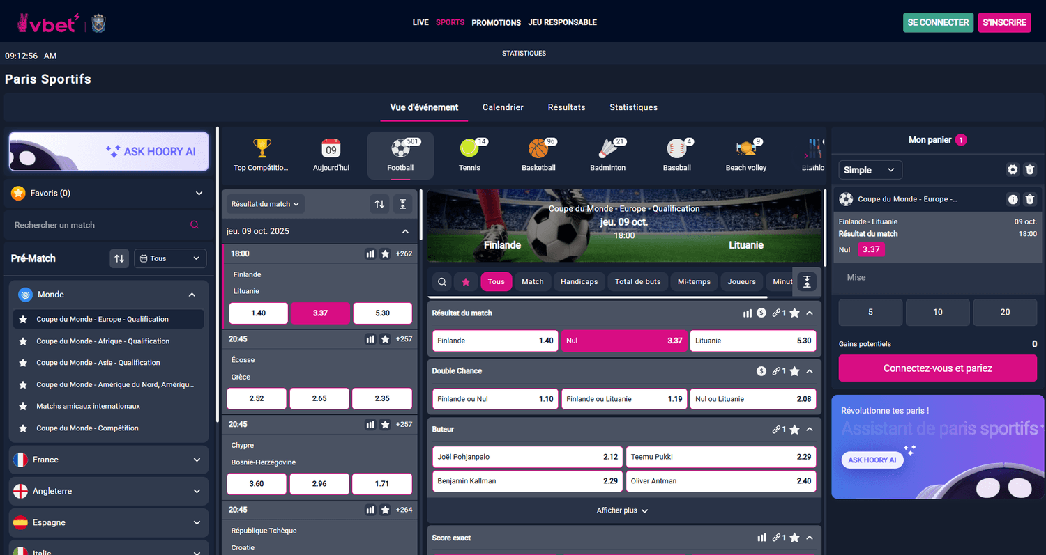 Arrivé sur le marché français en 2019, Vbet a rapidement conquis les parieurs grâce à son positionnement moderne, son interface colorée et une approche centrée sur le divertissement et la diversité sportive.